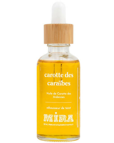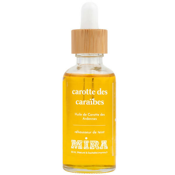 All our products are made from products of natural origin, here the carrot oil is made from organic carrots macerated in sunflower oil. Our packaging is also eco-responsible, here with a glass and bamboo dropper bottle.